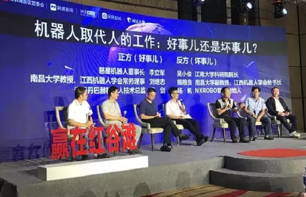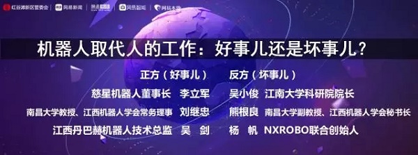 现场辩论的双方嘉宾阵容强大,正方辩手有慈星机器人董事长李立军,江西省机器人学会常务理事、南昌大学教授刘继忠,江西丹巴赫机器人技术总监吴剑。反方嘉宾有江南大学科研院院长吴小俊,南昌大学副教授熊根良,NXROB联合创始人杨帆。