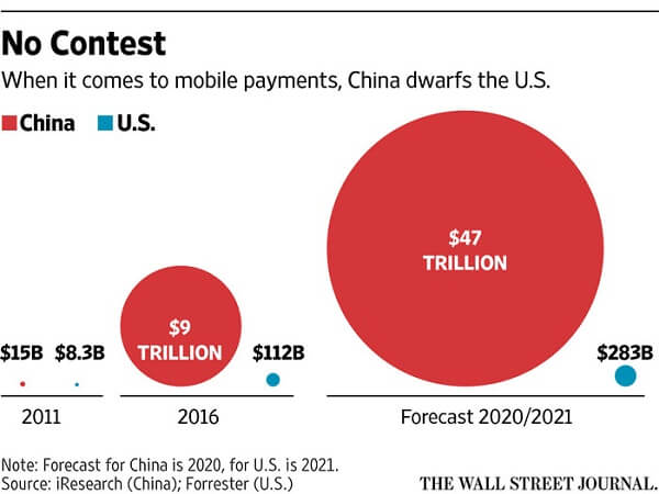 中国移动支付市场几乎是美国90倍