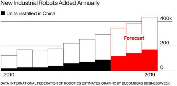 与此同时,中国的机器人自动化还没有损害工人工资,彭博社最近的一份报告显示,中国中等技能工人的工资仍在上涨。至少现在,这些工人的财富所受到的电子制造业的冲击不大。