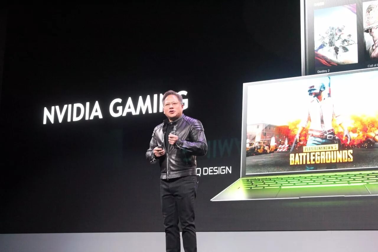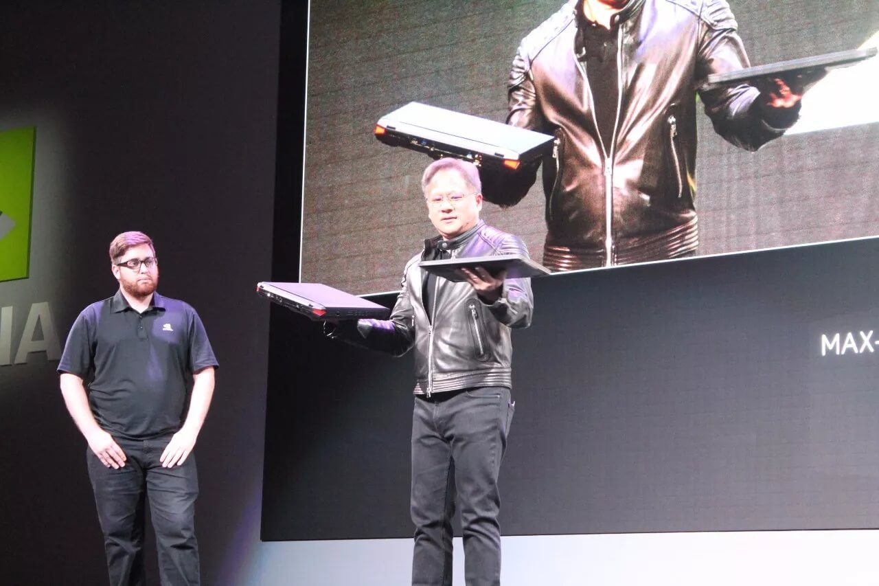 图丨黄仁勋对比游戏笔记本,左手为MAX-Q 设计(图片来源:DeepTech)