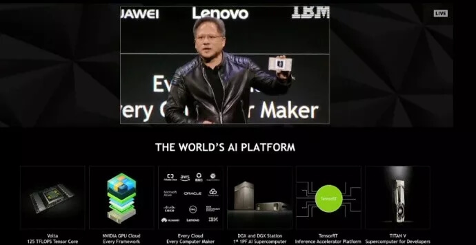 图丨黄仁勋手持Tesla-V100