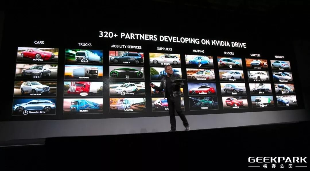 同时,英伟达也更多的关注于借助 AI 从各个方面提升驾驶体验,而不专注于自动驾驶,并「展示」了 NVIDIA 在自动驾驶领域的 320 家合作企业和机构,将为他们提供未来技术路线图。