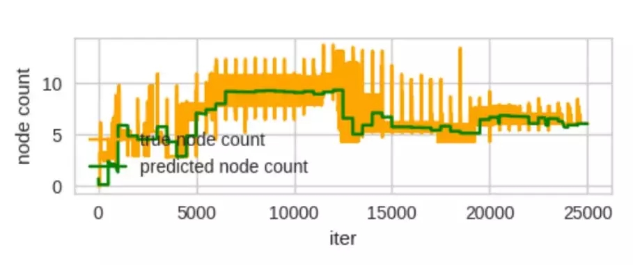 图 12:真节点计数指的是真正训练决策树并计算 APL。已预测的节点计数指的是代理 MLP 的输出。