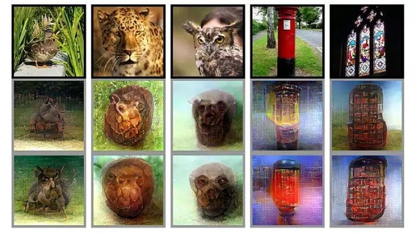 接下来是一个重复的过程,在这个过程中,系统创建图像,试图让DNN对所需的模板做出相似的反应——无论是动物还是彩色的玻璃窗。 这是一个试验和错误的过程,其中程序以中立的图像开始,并经过200次的重复缓慢地进行改进。为了了解它与想要的图像的接近程度,系统比较了模板和DNN对生成图像的响应之间的差异。这样的计算允许它逐个像素地朝着理想的图像改进。