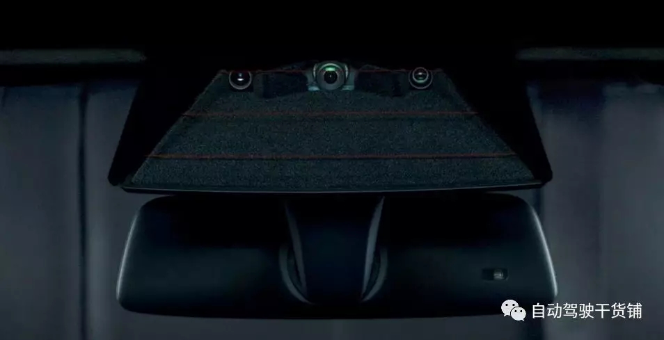下图为特斯拉 AutoPilot 2.0安装在挡风玻璃下方的三目摄像机。