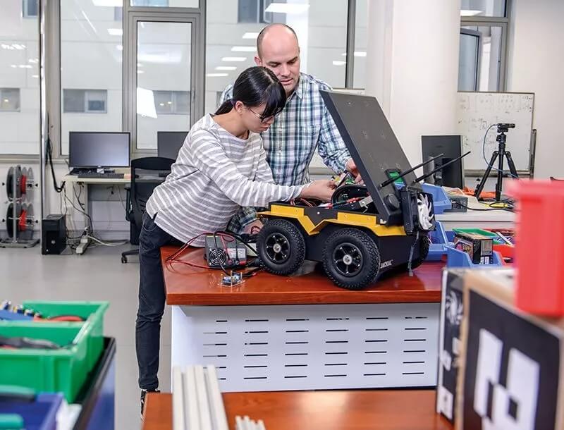 Sören Schwertfeger 和 Jiawei Hou 在上海科技大学进行机器人相关研究