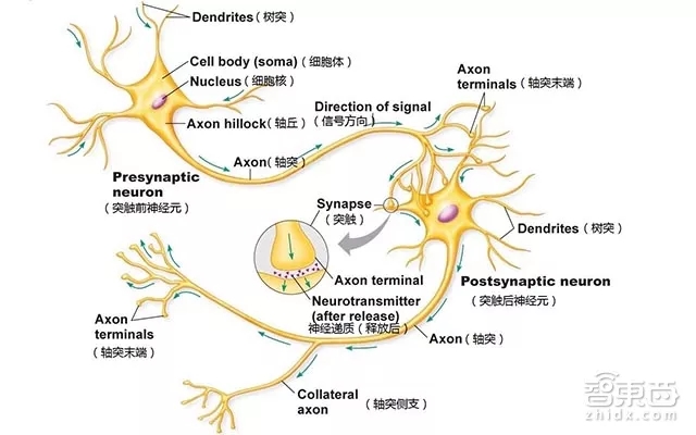 人脑神经元在接受到刺激后,其细胞膜内外带电离子分布将发生变化,因而形成电位差,电位差将沿着神经细胞轴突、树突双向传导,形成脉冲电流。而当该电信号传递到突触时,突触前神经元将释放神经递质(如多巴胺、肾上腺素)由突触后神经元接受神经递质产生兴奋(该过程单向传递),并向下传递作用与人体反应器并发生反应。