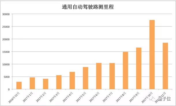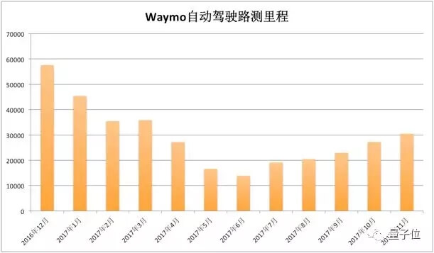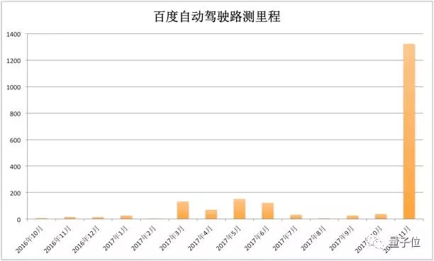 数据显示,百度美研从2017年11月开始,无人车测试里程数大幅上升。如下图所示。