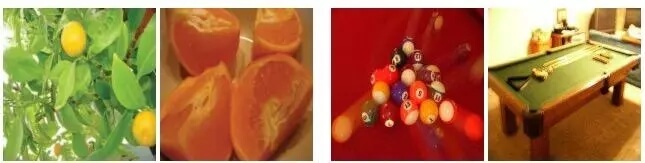 ImageNet 另一个具有挑战性的原因是:同一类物体可能看起来很不相同。我们来看一下下面这些图。左边的两幅图像都来自于”橙子“这一类,右边的两幅图像都来自于”桌球台“这一类。然而,每一张图像看起来都不一样!作为人类我们可以区分出其中一张图中的橙子被切开了而另一张图中的则没有;也可以看到一张图中的桌子是放大了的而另一张图中的没有。这就是所谓的类间变量。我们希望最小化这个变量,因为对于同一类的两张图像,我们需要深度学习模型能够认为它们看起来很相像。