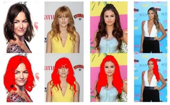 基于深度学习的图像分割方法能将不同类别的区域从图像中分割出来。这其中包括非监督学习(如聚类)和监督学习的方法(需要利用标记数据来训练算法)。在论文中作者训练出了深度网络模型来从图像中分割出头发和非头发区域,同时还利用了启发式算法(在没有大量标记训练数据的时候)生成数据标签来训练网络,实现了较好的头发分割效果。