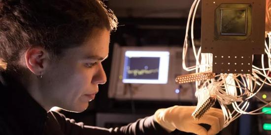 研究科学家Marissa Giustina在圣芭芭拉谷歌量子AI实验室安装Bristlecone芯片。来源:Google Quantum AI Lab