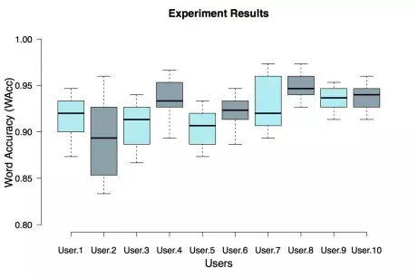 科学家们利用非侵入式的电极收集肌电信号,通过共有八个电极。他们可以在用户不张嘴做出肉眼可觉察变化的情况下收集一系列肌电信号,并将这些信号传输到设备的深度学习模型中进行识别。