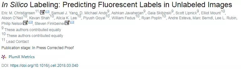 论文:In Silico Labeling: Predicting Fluorescent Labels in Unlabeled Images