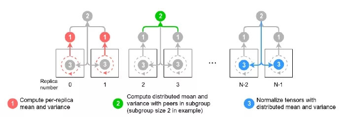 作者通过对几个计算节点组成的子节点做分布式的批归一化来实现对 BN 这一过程的增强。具体算法如图所示: