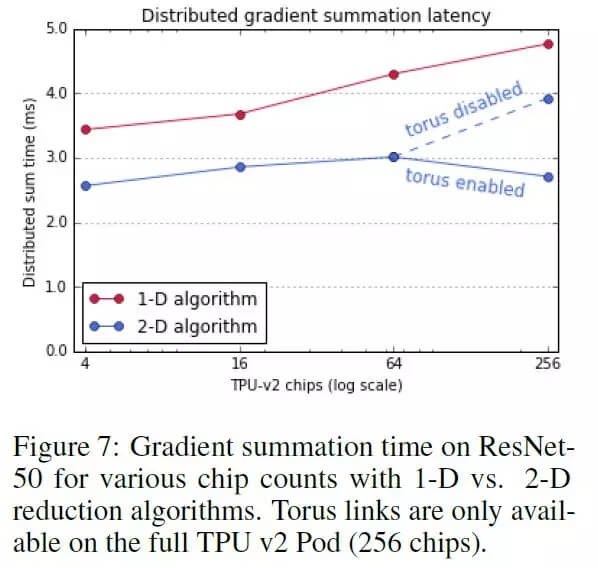 分布式归一化的结果如下图所示,实验使用了 TPU v2 Pod 进行训练,并且没有使用 LARS 优化。