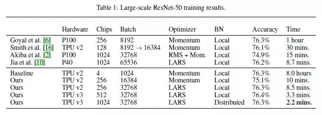 AI 前线导读: 随着技术、算力的发展,在 ImageNet 上训练 ResNet-50 的速度被不断刷新。2018 年 7 月,腾讯机智机器学习平台团队在 ImageNet 数据集上仅用 6.6 分钟就训练好 ResNet-50,创造了 AI 训练世界纪录;一周前,壕无人性的索尼用 2176 块 V100 GPU 将这一纪录缩短到了 224 秒;如今,这一纪录再次被谷歌刷新……