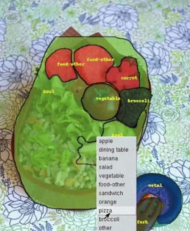 在具体数据集之外,我们还在 Fluid Annotation 项目中进行了一系列探索,相关技术成果能够加快数据集的创建与可视化速度。Fluid Annotation 是一种探索性机器学习驱动接口,能够更快地对图像内容进行注释。