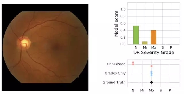 2016 年年底,我们发表的一项研究结果表明,一套通过评估视网膜眼底图像检测糖尿病视网膜病变迹象的模型在具体成效方面,完全能够等同甚至略优于美国医疗委员会认证眼科医师。在 2018 年,我们更进一步,得以通过使用眼科专家标记的训练图像配合最终裁定诊断结果(由多位视网膜专家进行会诊,并对每份眼底图像进行集体评估)证明,我们的模型确实达到了可以与视网膜诊疗专家相媲美的分析水平。