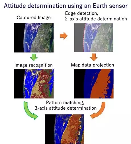 地球传感器基于低成本的商业传感器和计算设备,利用边缘计算平台和简单的图像分割算法实现了不同地表的识别,随后利用一种新颖的姿态估计算法从识别后的数据中估计出三轴位姿。