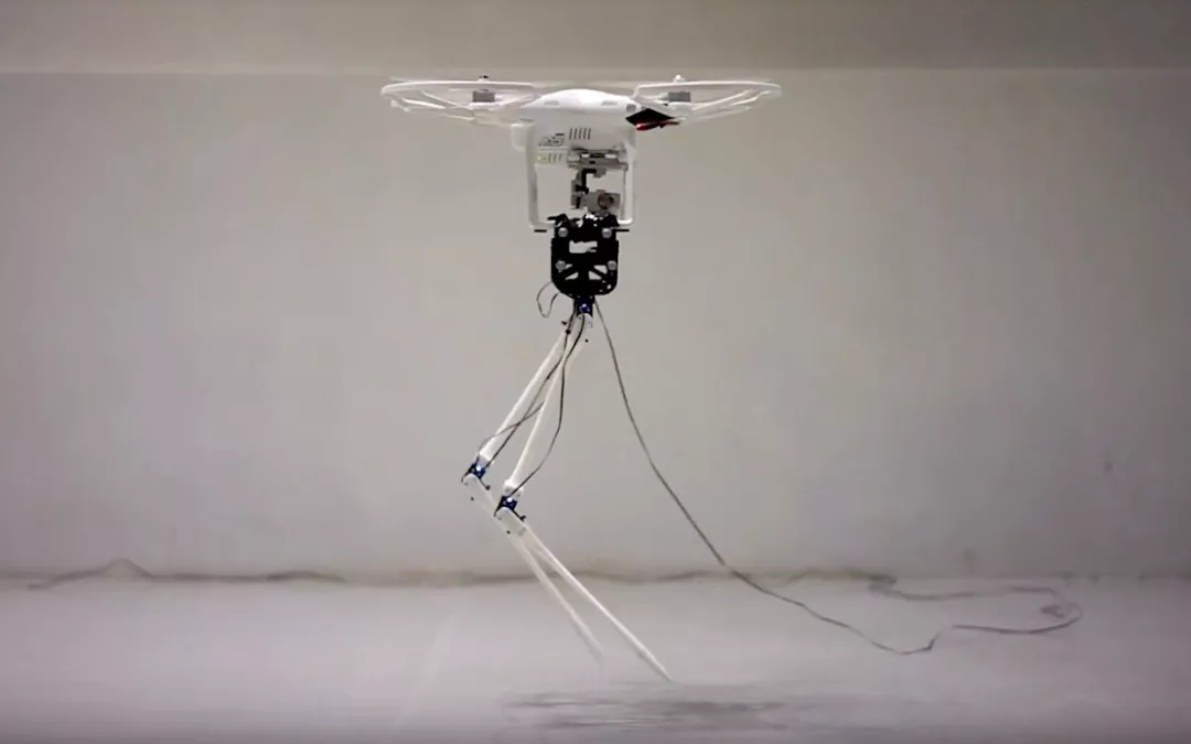 同样对于无人机来说,近地悬停是一个高难度且十分耗能的任务。但当它下面长了腿,起到支撑作用克服机体的重力就可以稳稳当当的地面附近观测作业了。在野外特别是遍布峡谷沟壑的冰川、山地等地区,这种类型的机器人将会有很大的应用场景。