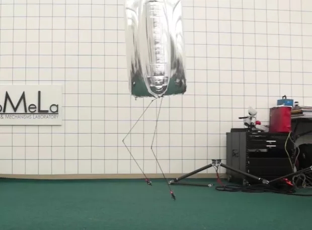 UCLA在更早的2016年还推出过一个名为BALLU的机器人,简单来说在气球下加了两条腿。也是借用了气球的浮力克服重力,实现更灵活的控制。由于没有负重它就避免了一系列双足机器人的倾倒问题。
