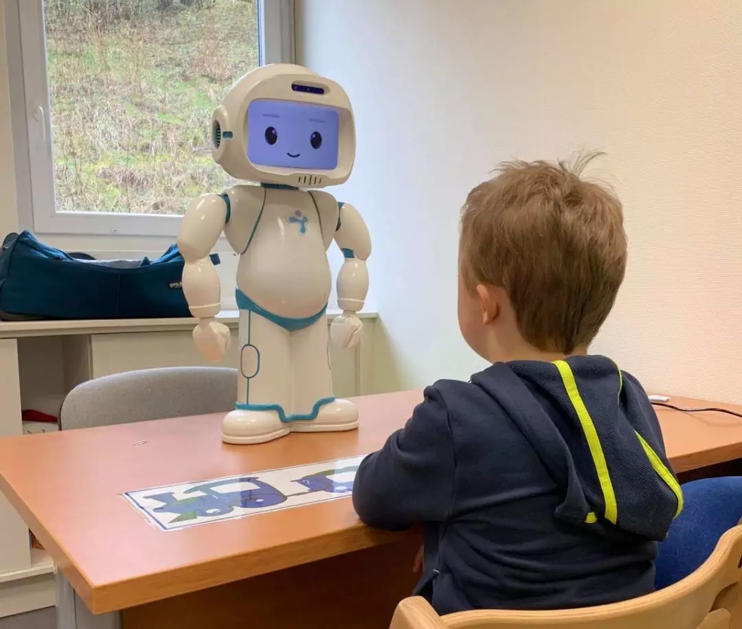 基于此,全球不少机构投入机器人帮助自闭症治疗的研究,比如英国赫特福德大学、麻省理工学院、软银机器人公司等。2017 年从卢森堡大学独立出来的 LuxAI 机器人公司,也开发出一款萌态可掬的机器人 QTrobot,针对自闭症谱系障碍(ASD)的孩童,协助他们学习社交及个人卫生自主的能力,提升自信心。