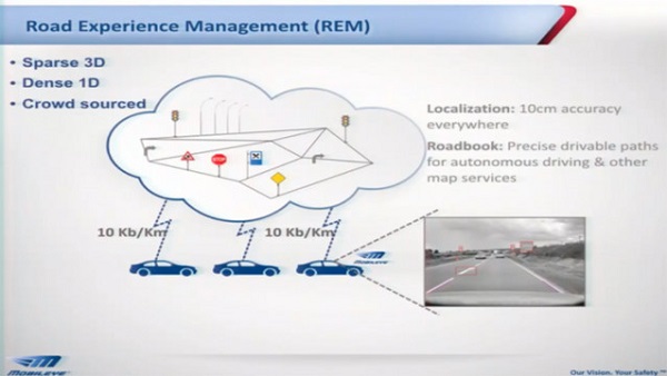 之后,高精度地图又为自动驾驶系统带来了更大的便捷。譬如Mobileye野心勃勃的道路管理系统(Road Experience Management,REM),他们试图打造一种非常精确、非常实时的庞大地图,同时在每辆车上配备可以上传和下载实时地图数据的软件,从而达到一种理想状态——使汽车仅仅依赖导航就完成自动驾驶。这非常类似于SLAM(即时定位于地图构建)的变种,但又远远没有那么简单。