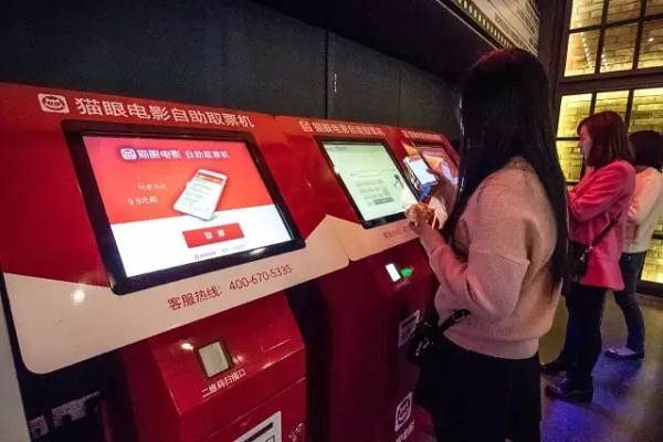 观众在使用猫眼电影的取票机取票。@视觉中国