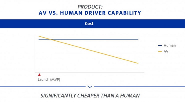 通用表示:将在2025年之前,将自动驾驶车辆的成本降到每英里1美元之内。就目前来说,相似城市中行驶的自动驾驶汽车的成本为每英里2.5美元。