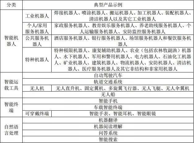 智能产品是指将人工智能领域的技术成果集成化、产品化,具体的分类如表 1 所示。