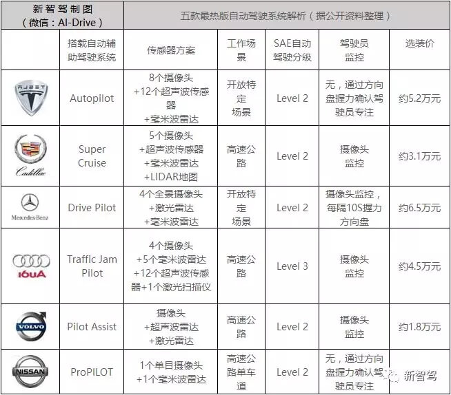 比如,特斯拉的Autopilot、凯迪拉克的Super Cruise、奔驰的Drive Pilot、奥迪的Traffic Jam Pilot、沃尔沃的Pilot Assist和日产 ProPILOT。
