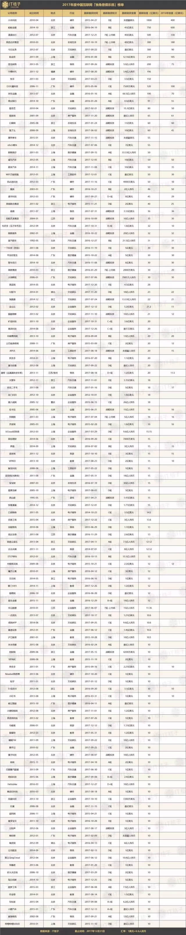 一、2017年度中国互联网“独角兽俱乐部”榜单
