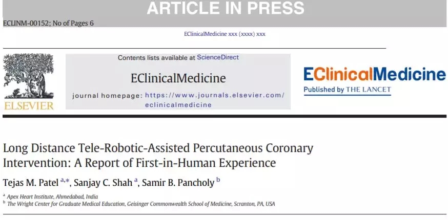 这名来自印度的医生使用Corindus公司开发的一个精密血管机器人,为20英里外的患者进行了共计五次的经皮冠状动脉介入治疗(PCI)手术。手术很成功,其结果已发表到医学杂志《柳叶刀》(The Lancet)的子刊《电子医学》(EClinicalMedicine)上。