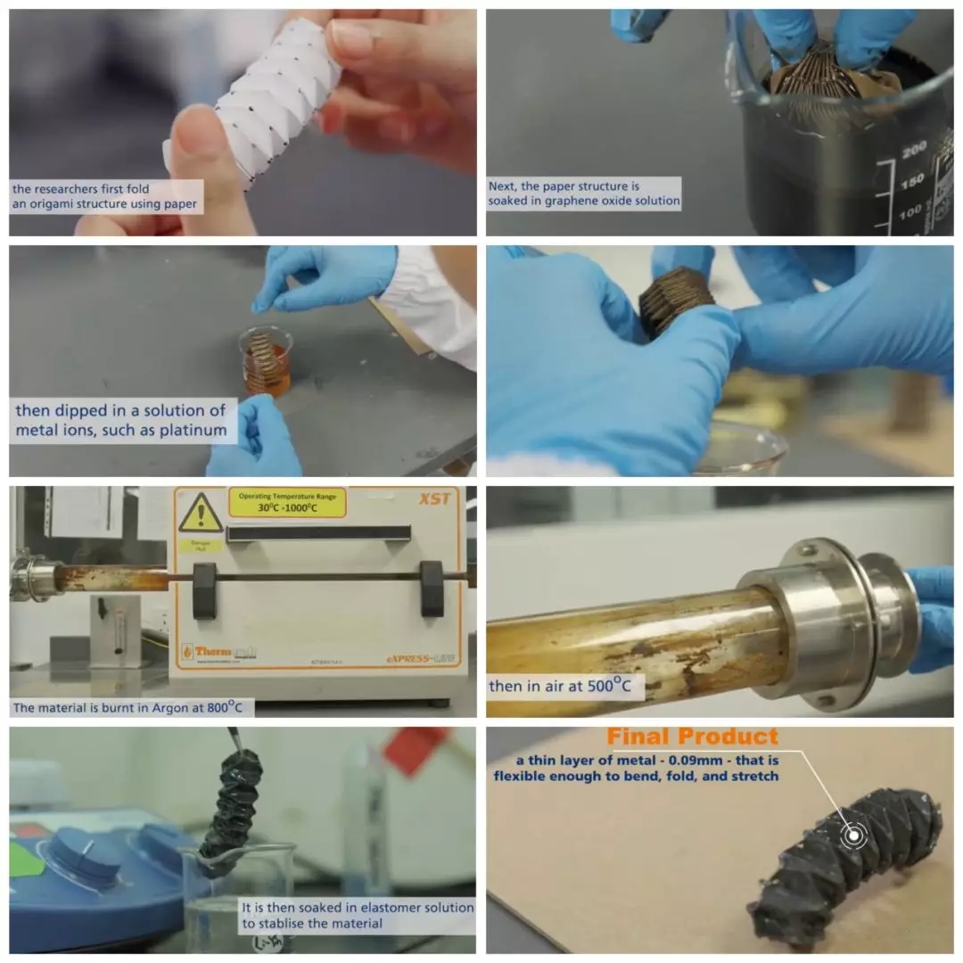 现在,新加坡国立大学(NUS)的一组研究人员开发了一种新方法,创造一种新的金属材料,采用“石墨烯氧化模板合成”的新工艺制造,成为了用于软机器人的新材料。