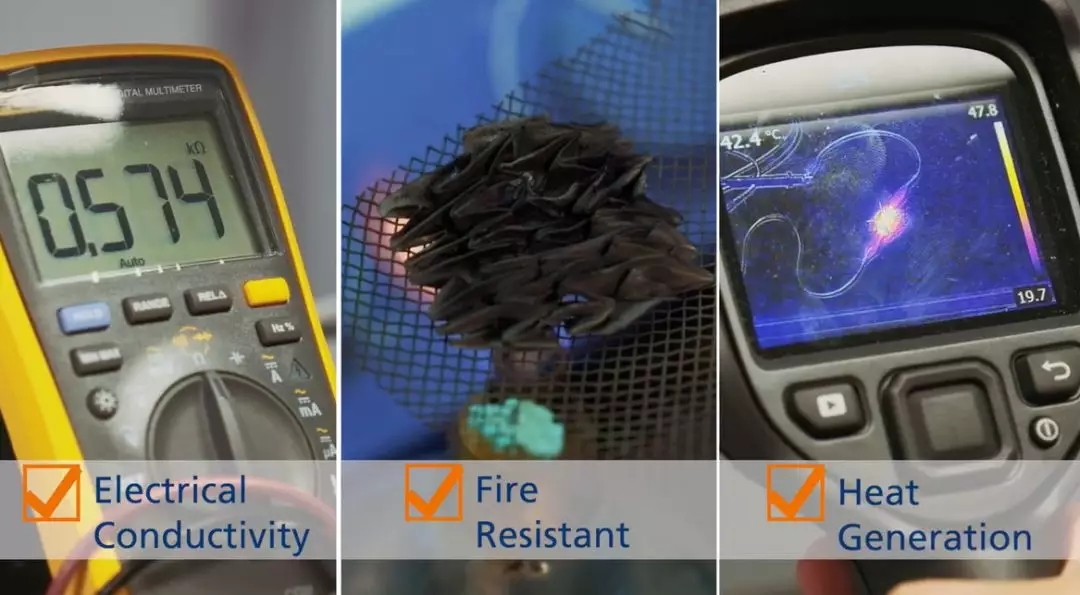 此外,这种导电材料具有地热加热的能力——通过这种材料发送电压使其升温,这有助于防止机器人在寒冷环境中工作时的冰损伤。这些特性有助于创造轻便灵活的搜救机器人,让它们进入危险区域,并实时反馈与通信。
