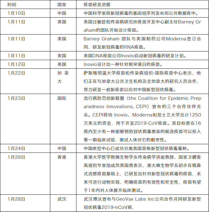 十天之后,1 月 24 日,中国也宣布分离出新型冠状病毒毒株,迈出疫苗研发的坚实一步。