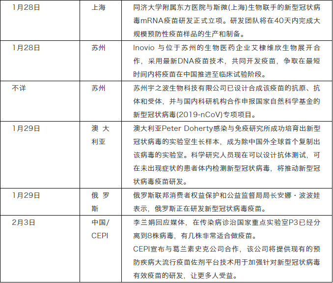 全球疫苗研发竞赛(不完全统计,截止2月3日)